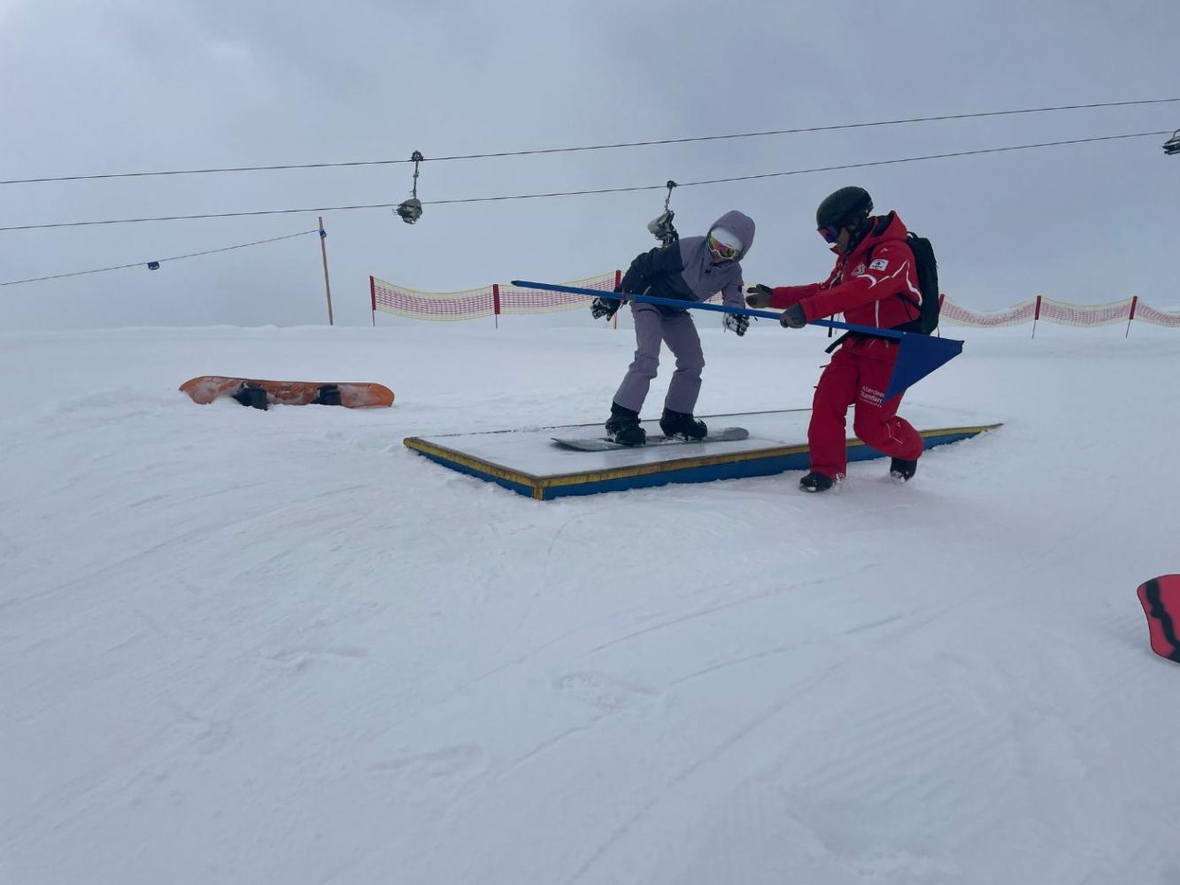 Dieses Mal gab es neben den Skigruppen, die in verschiedene Niveaus unterteilt waren, auch eine eigene Rodelgruppe.