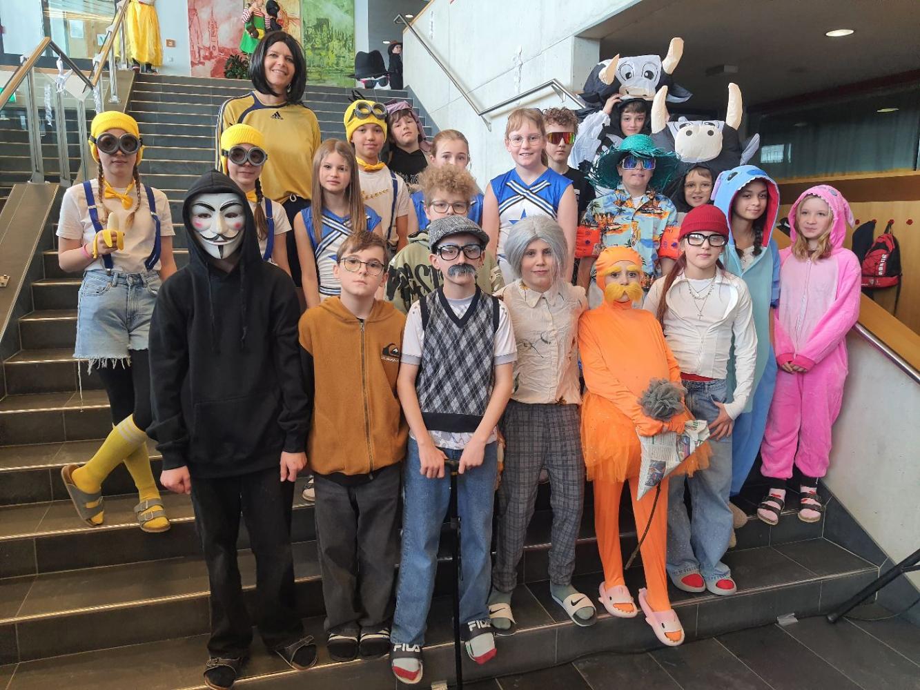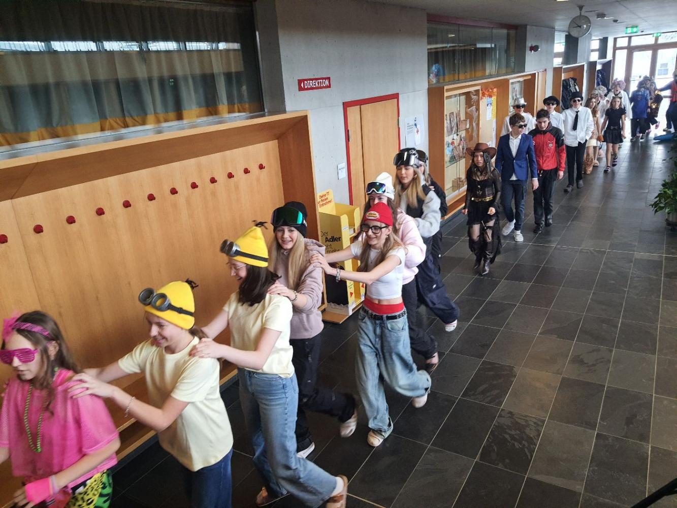 Bei unserer traditionellen Faschingspolonaise zogen wir durch das Schulhaus. Ein besonderes Highlight war die große Kostüm-Show. Ob einzeln, zu zweit oder in Gruppen – voller Stolz und Begeisterung präsentierten die Kinder ihre ausgefallenen Kostüme. Fantasie und Einfallsreichtum kannten dabei keine Grenzen! Bei der Preisverleihung wurden die drei besten Einzel-, Paar- und Gruppenkostüme mit Süßigkeiten belohnt.