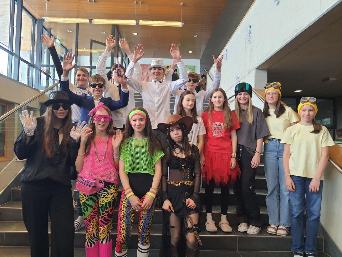 Am Faschingsdienstag verwandelte sich unsere Mittelschule in eine fröhlich-bunte Faschingswelt voller Musik und närrischer Überraschungen. Schüler und Lehrkräfte tauchten gemeinsam in das bunte Treiben ein und feierten eine ausgelassene Party. Mit viel Kreativität und guter Laune wurden originelle Kostüme präsentiert – ein wahres Fest für die Augen!
