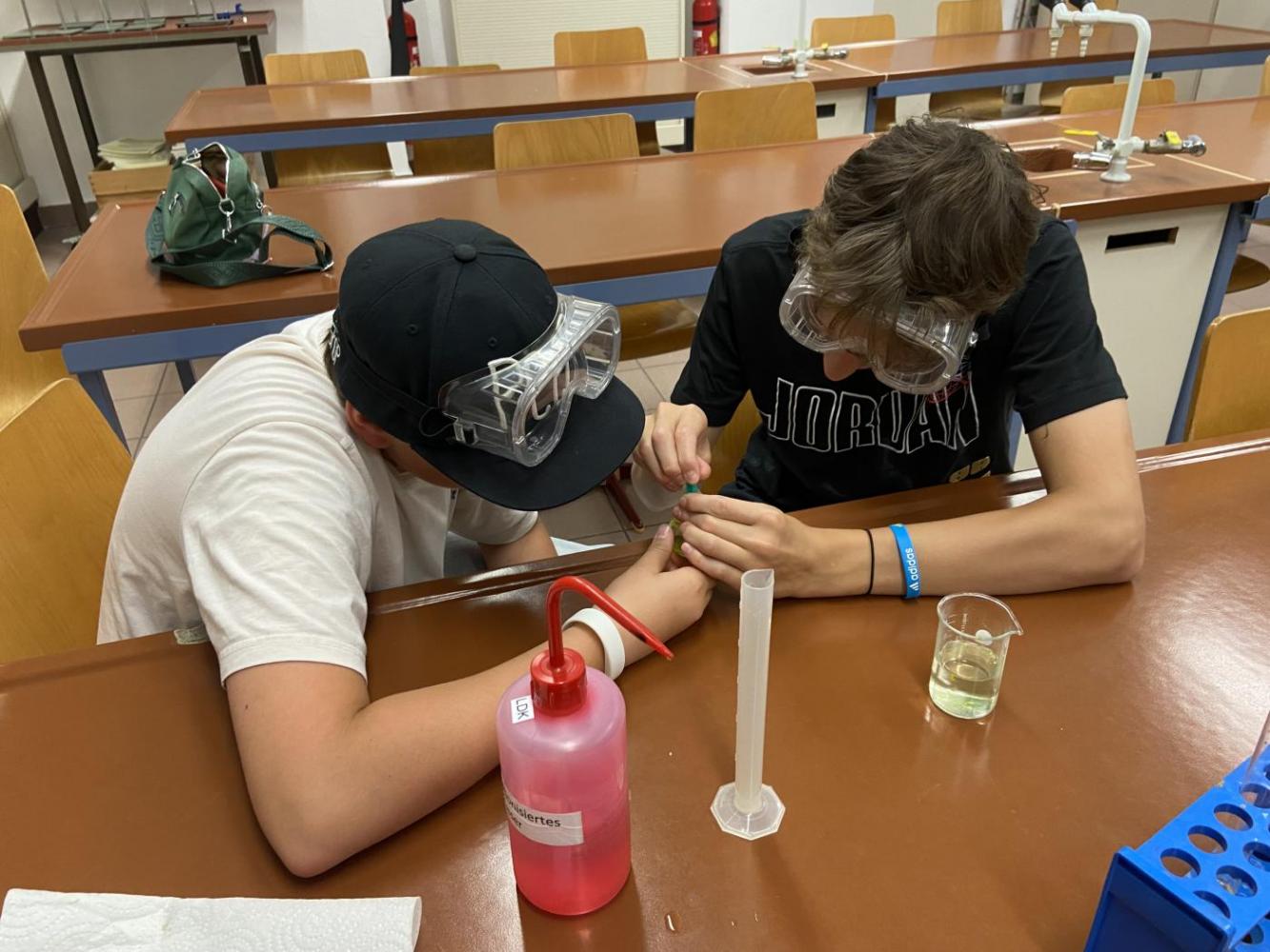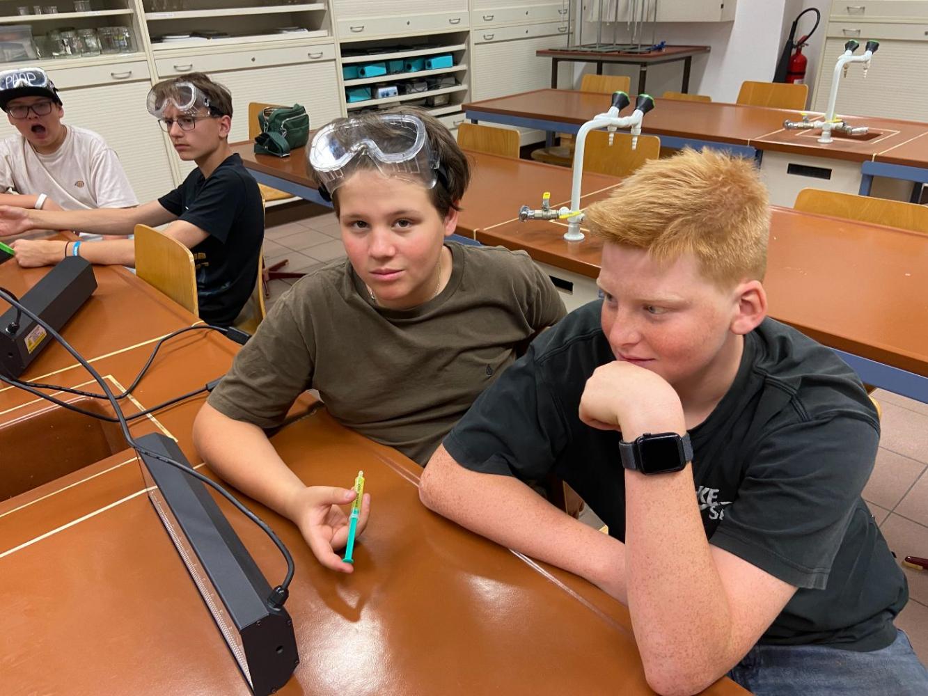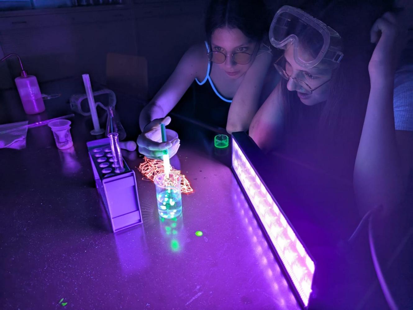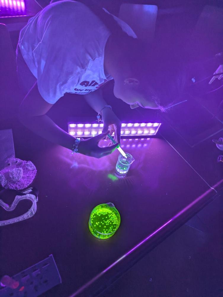Im Biochem-Lab konnten wir chemische Experimente durchführen und so entdecken, dass nicht nur Glühwürmchen leuchten, sondern viele natürliche Stoffe fluoreszieren.