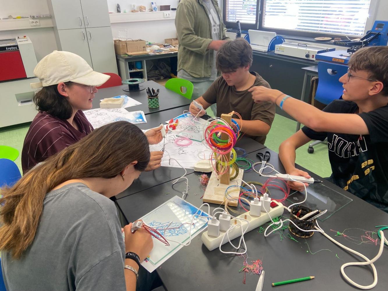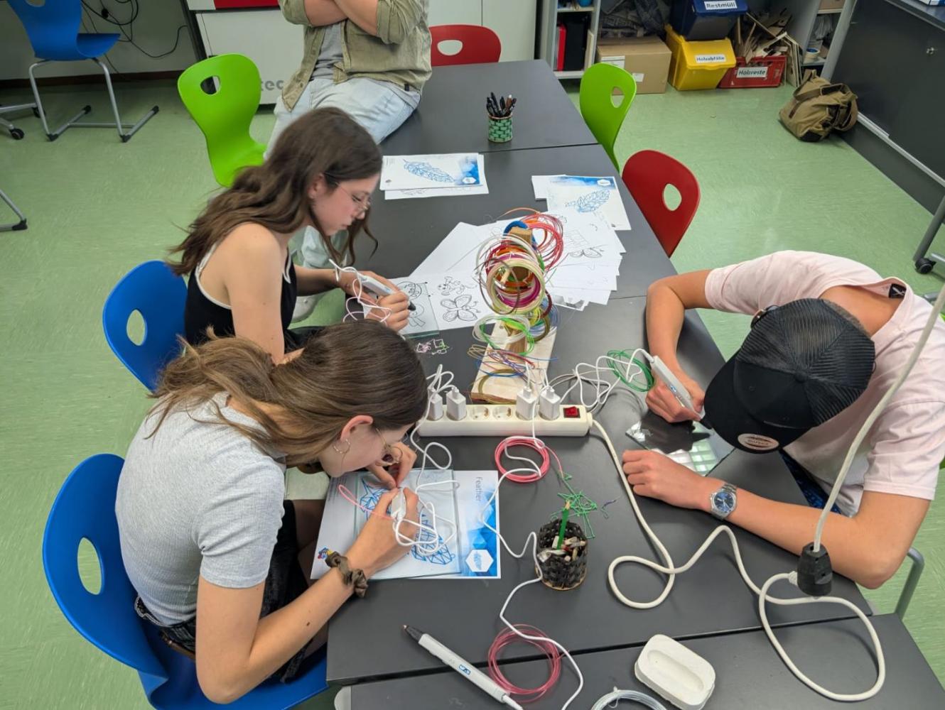 Im Kreativ-Lab durften wir mit 3D Stiften zeichnen und wir kreierten kleine Kunstwerke mit den verschiedensten Farben.