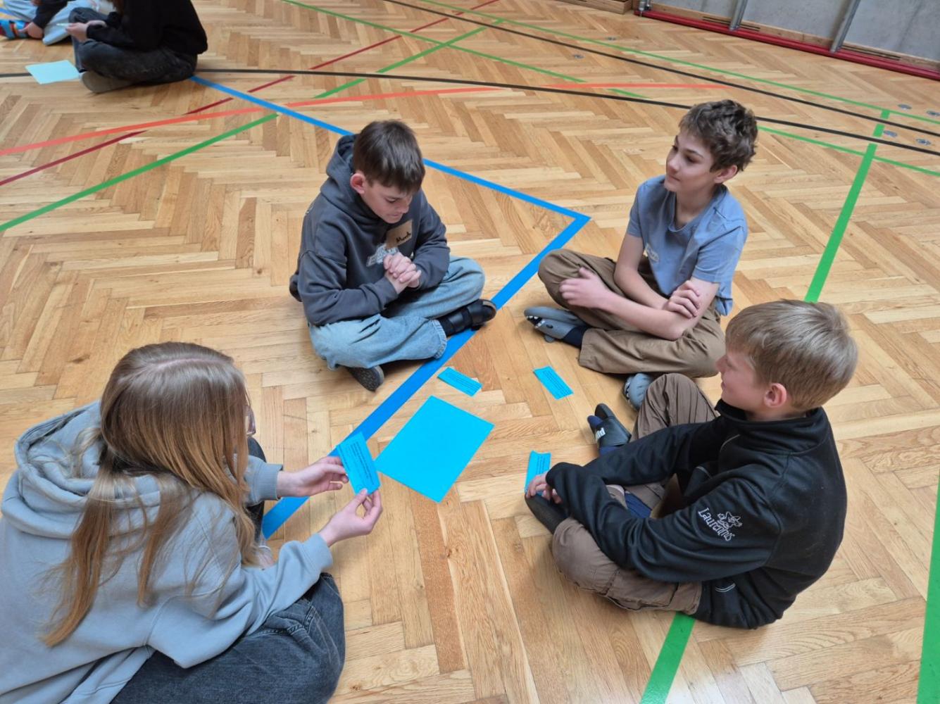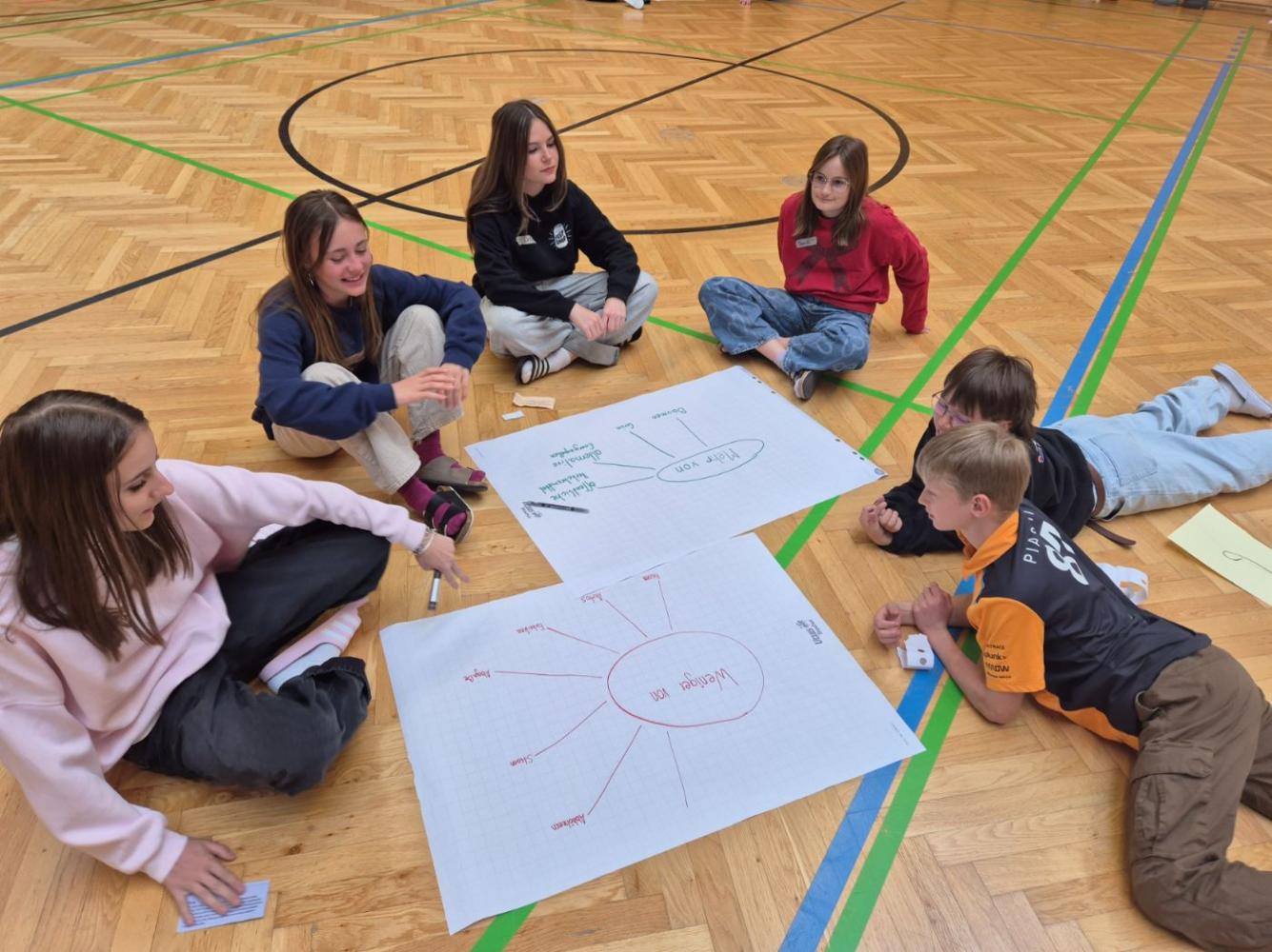 Durch ein Rollenspiel, bei dem die Kinder verschiedene Rollen übernahmen, konnten sie erkennen, wer Freiheiten und Sicherheiten genießt und wer im Leben mit Stillstand konfrontiert ist. Anschließend diskutierten sie ausführlich über ihre Erkenntnisse und fügten weitere Punkte hinzu.