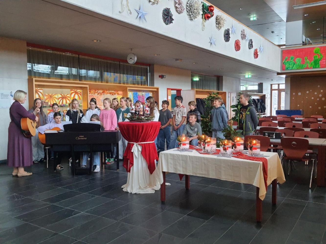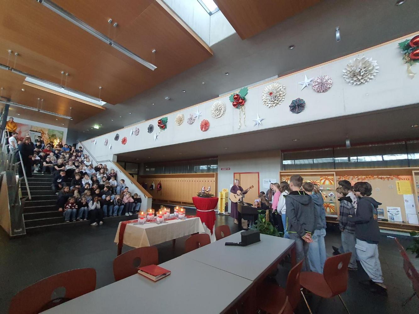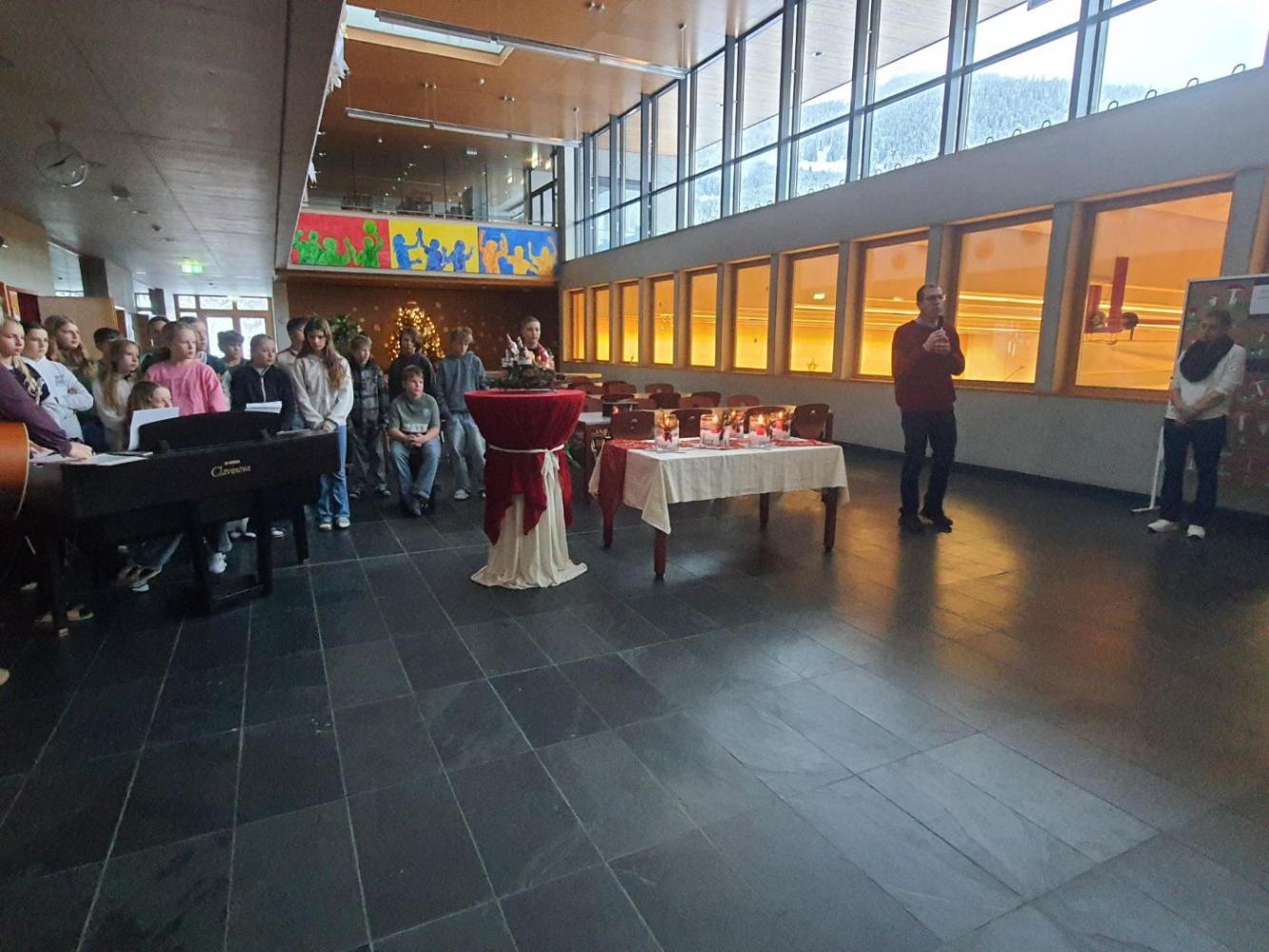 Im festlich geschmückten Schulhaus fand eine stimmungsvolle Lichtersegnung mit Herrn Pfarrer Willi statt. Jede Klasse erhielt ein Glas mit einer Kerze – ein Symbol für das Klassenzimmer und ein Licht, das die Herzen erwärmt. Frau Achenrainer musizierte gemeinsam mit den Kindern der zweiten Klasse und bereicherte die kleine Feier mit wunderschönen Klängen. In dieser warmen, besinnlichen Atmosphäre wurden alle auf die bevorstehende Adventszeit eingestimmt und durften die Bedeutung des Lichts als Zeichen der Hoffnung und Verbundenheit erleben.