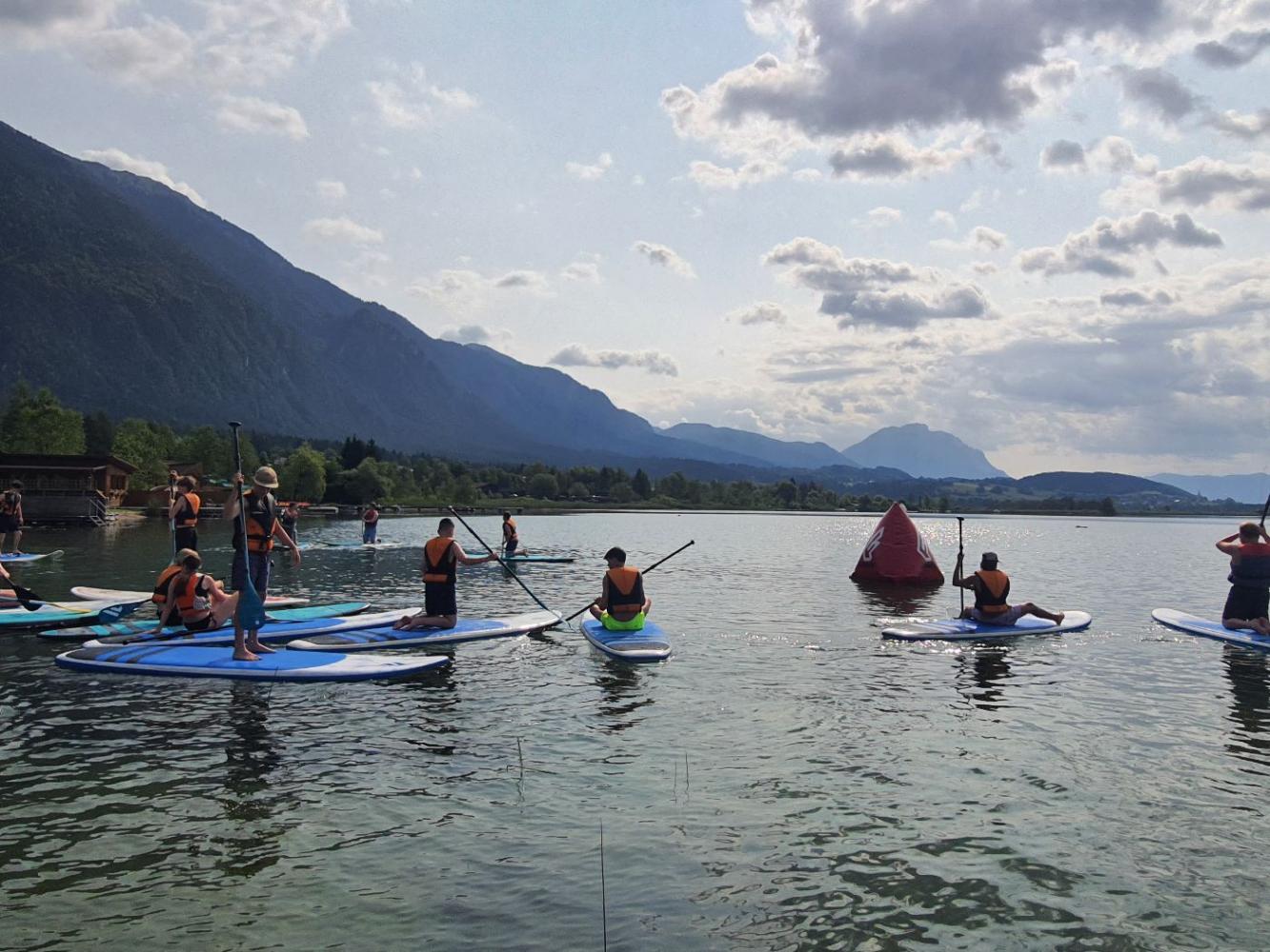 Fünf Tage voller Bewegung und Spaß standen auf dem Programm: Stand-Up-Paddling, Windsurfen, Volleyball und Tanzen sorgten für sportliche Herausforderungen und jede Menge Action. Untergebracht waren die Schülerinnen und Schüler in den gemütlichen Woodys, den kleinen Holzhäuschen des Lake Resorts. Sie boten die perfekte Kulisse für gemeinsame Erlebnisse.