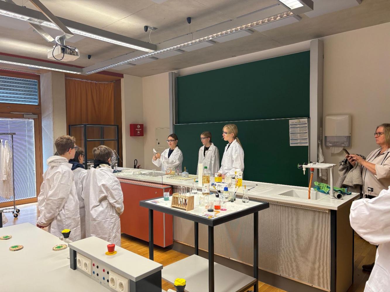 Im Anschluss daran konnten die Gäste verschiedene Stationen besuchen, darunter die Schulküche, der Werkraum, der Turnsaal sowie das Chemielabor. Die Kinder zeigten großes Interesse und beteiligten sich mit viel Begeisterung an den angebotenen Aktivitäten.