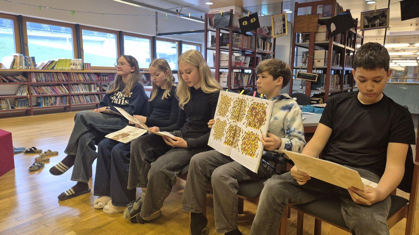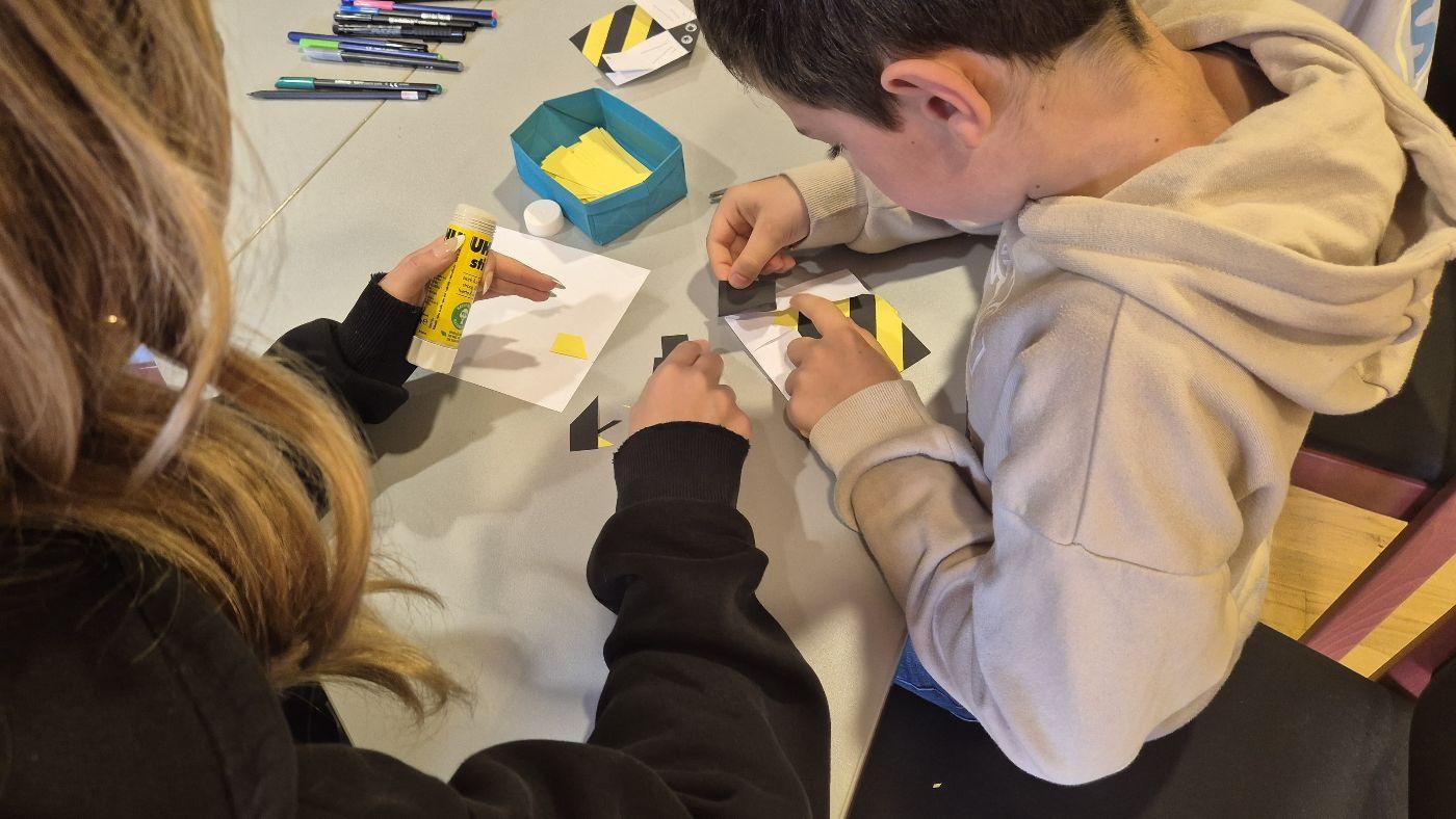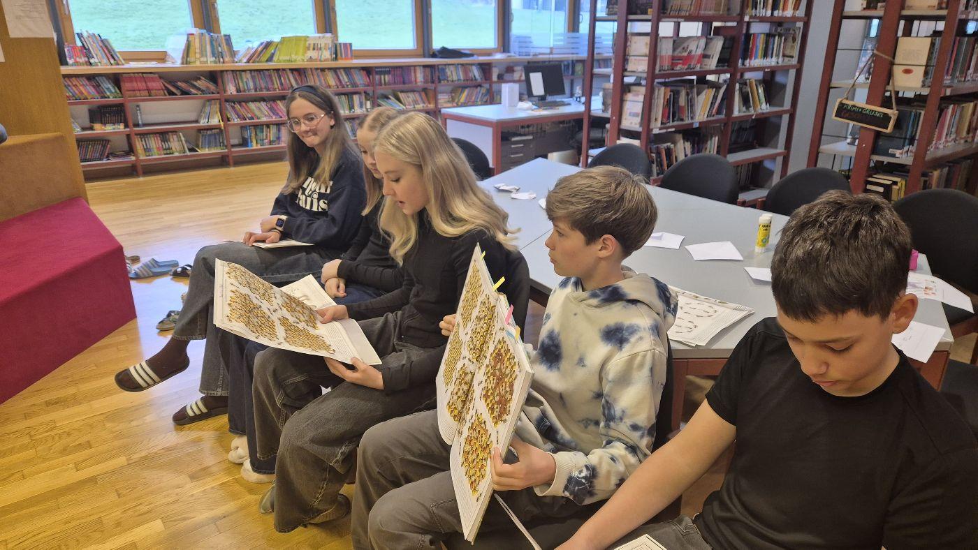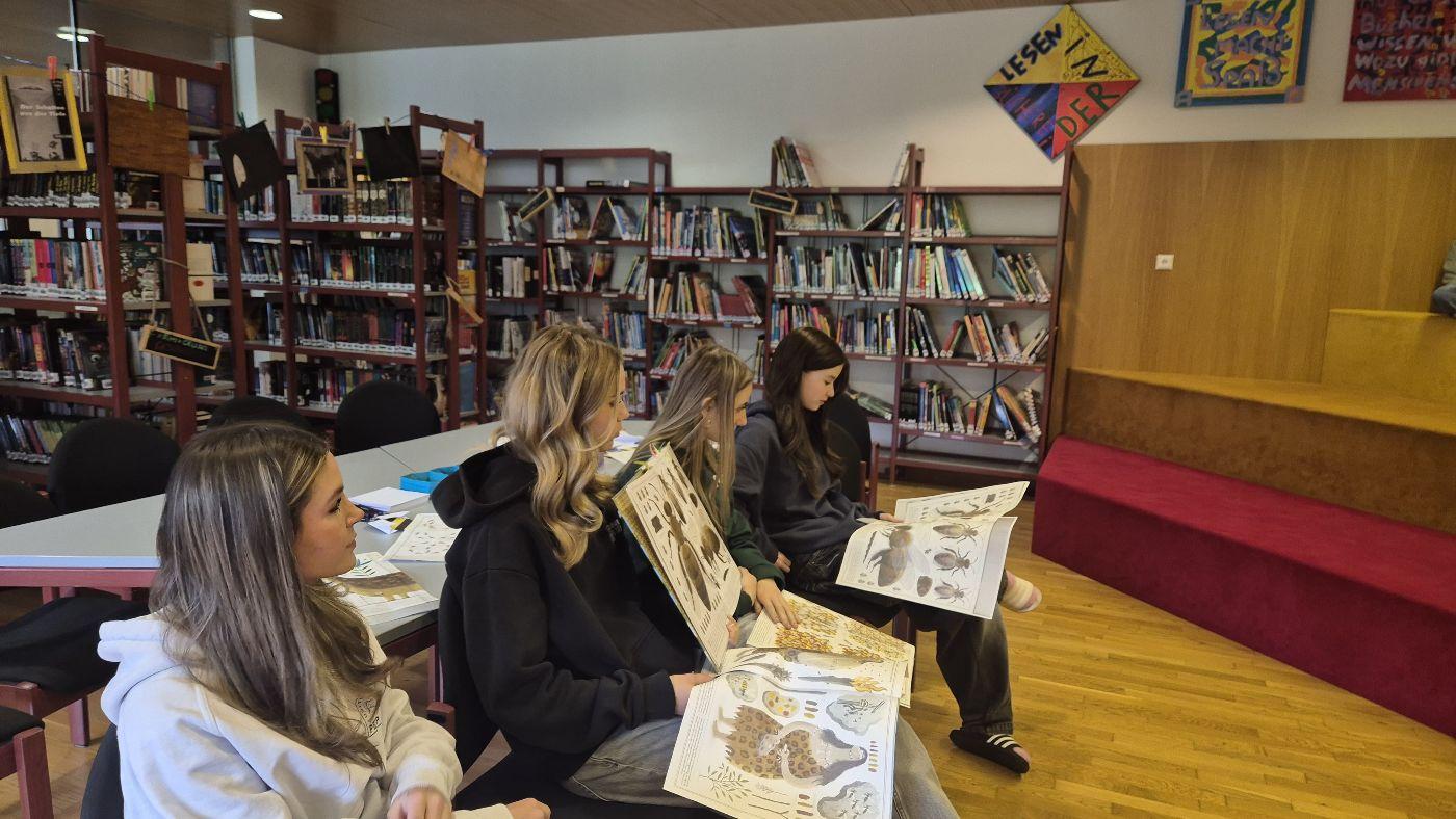 In der Bibliothek haben Schülerinnen und Schüler aus der 3. und 4. Klasse aus dem Sachbuch "Bienen" von Piotr Socha vorgelesen und die dazugehörigen Bilder betrachtet. Anschließend wurde aus Papier eine Origami-Biene gefaltet. Die Station wurde von Frau Bürger vorbereitet und geleitet.